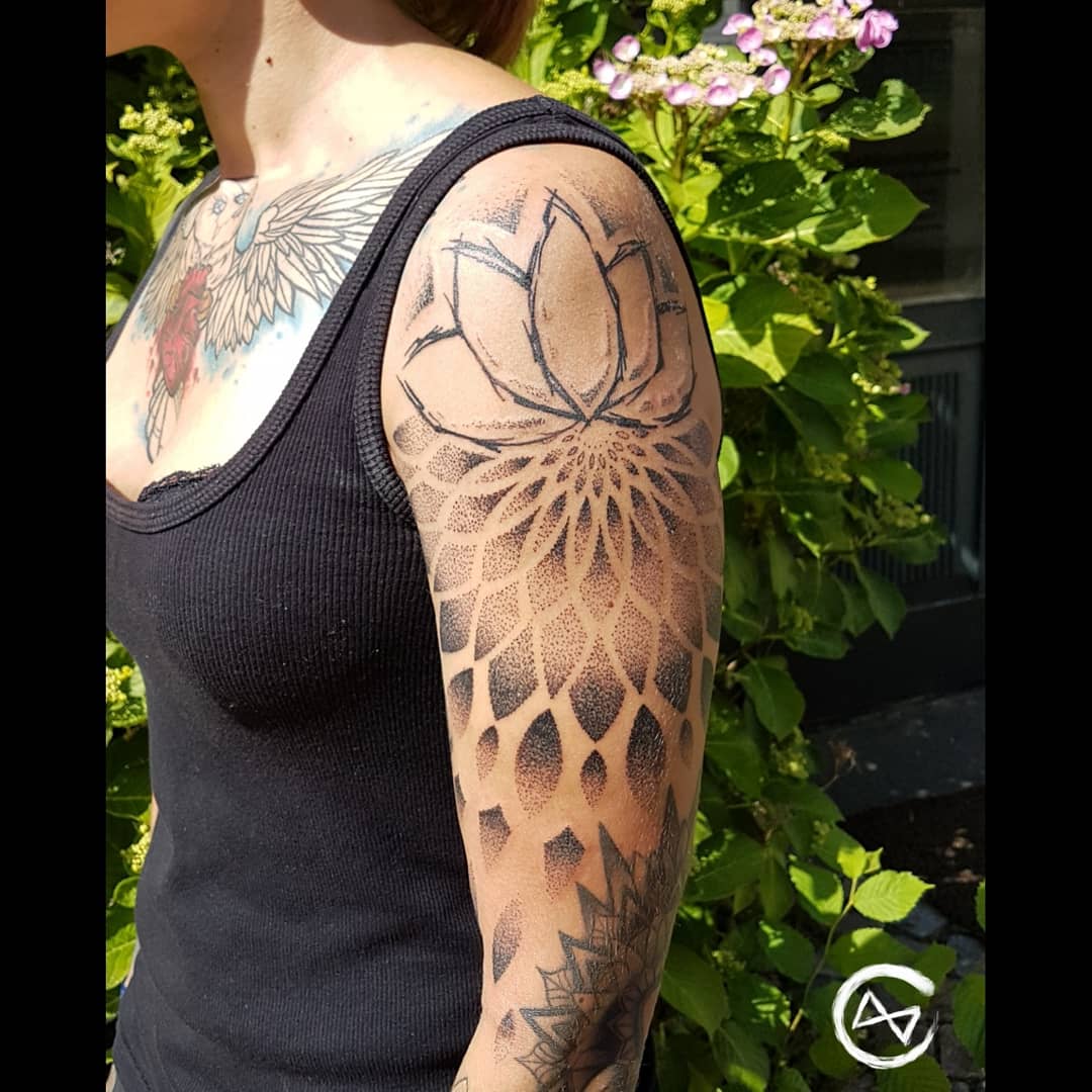 Mandala Pattern Tattoo, Mandala-Sleeve, Mandalasleeve, Mandala Tattoo, Dotwork and Linework Tattoo, Mandalatattoo, Flensburg Tattoo Studio, Schwarze Zeit, SchwarzeZeitTattoo