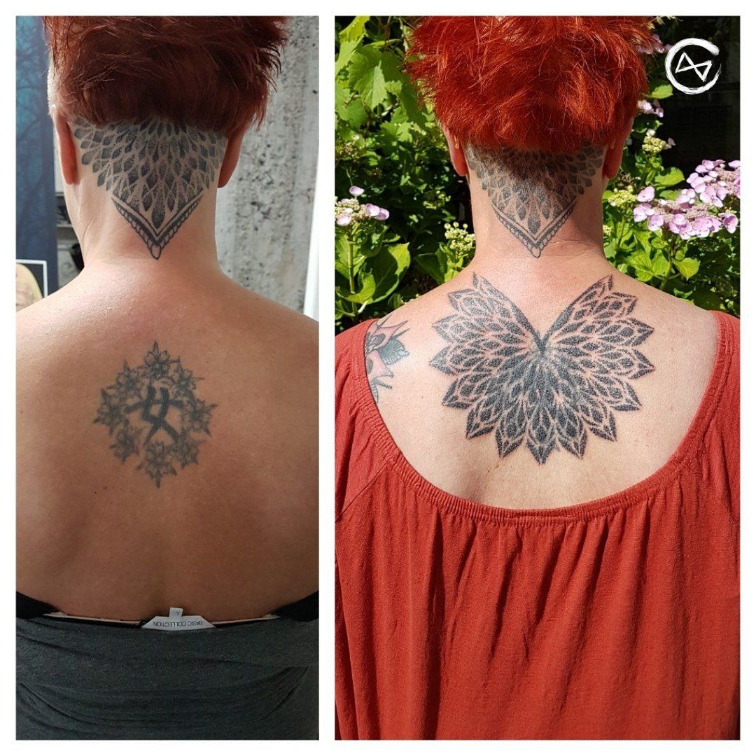 Cover Up Mandala, Handpoke, Mandala Handpoke Tattoo, Cover-Up, Mandala Tattoo, Dotwork and Linework Tattoo, Mandalatattoo, Flensburg Tattoo Studio, Schwarze Zeit, SchwarzeZeitTattoo