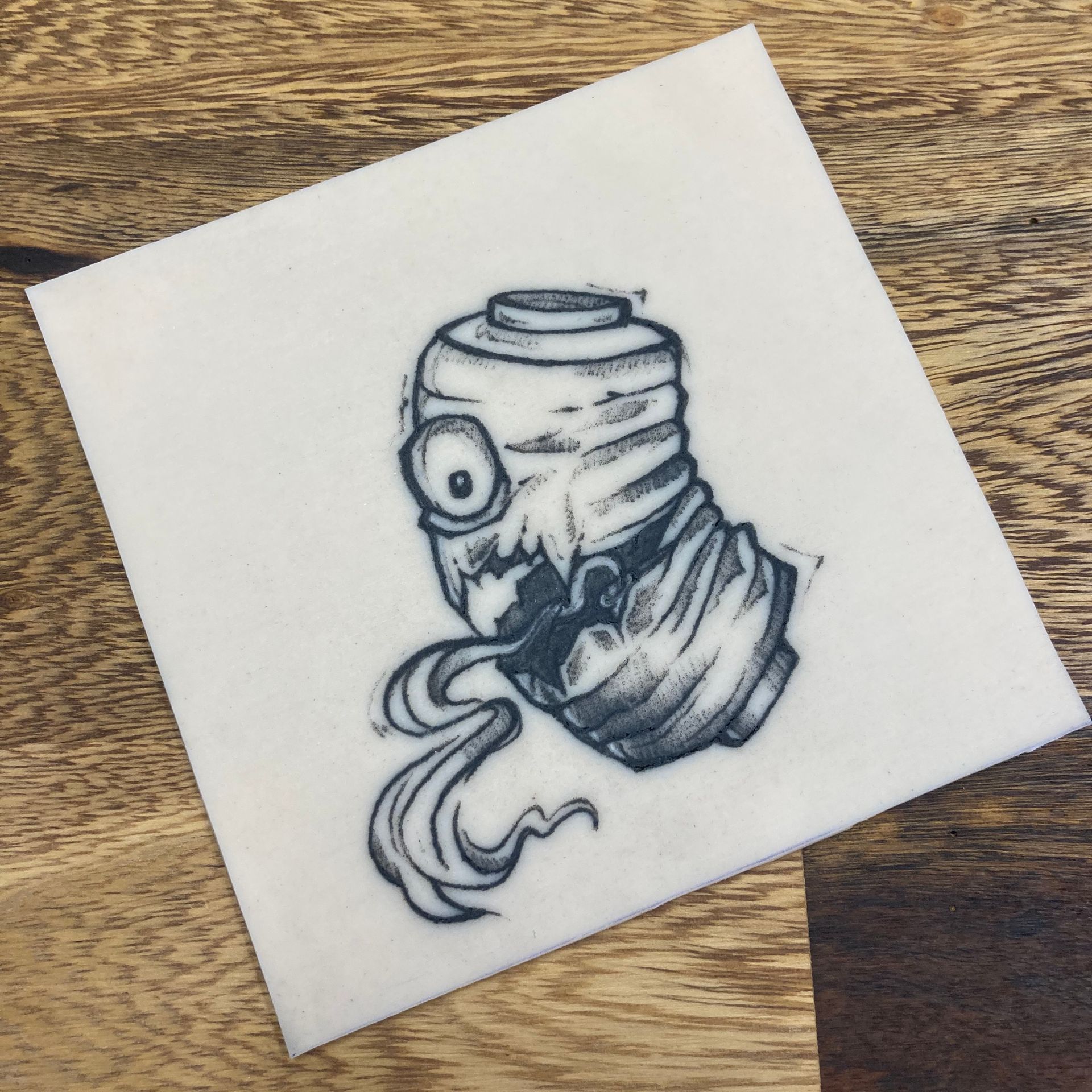 Übungshaut, Tattoo Übung, Tattoo, erste Schritte Tattoo, practise skin, tattoo practice, tattoo apprentice, Tattoo Lehrling, Schwarze Zeit, Flensburg, Tattoo Flensburg, Flensburg Tattoo Studio, Japanese Tattoo, yokai, Anime, Manga, japanische Mythologie, Yokai Laterne, Chochin-obake