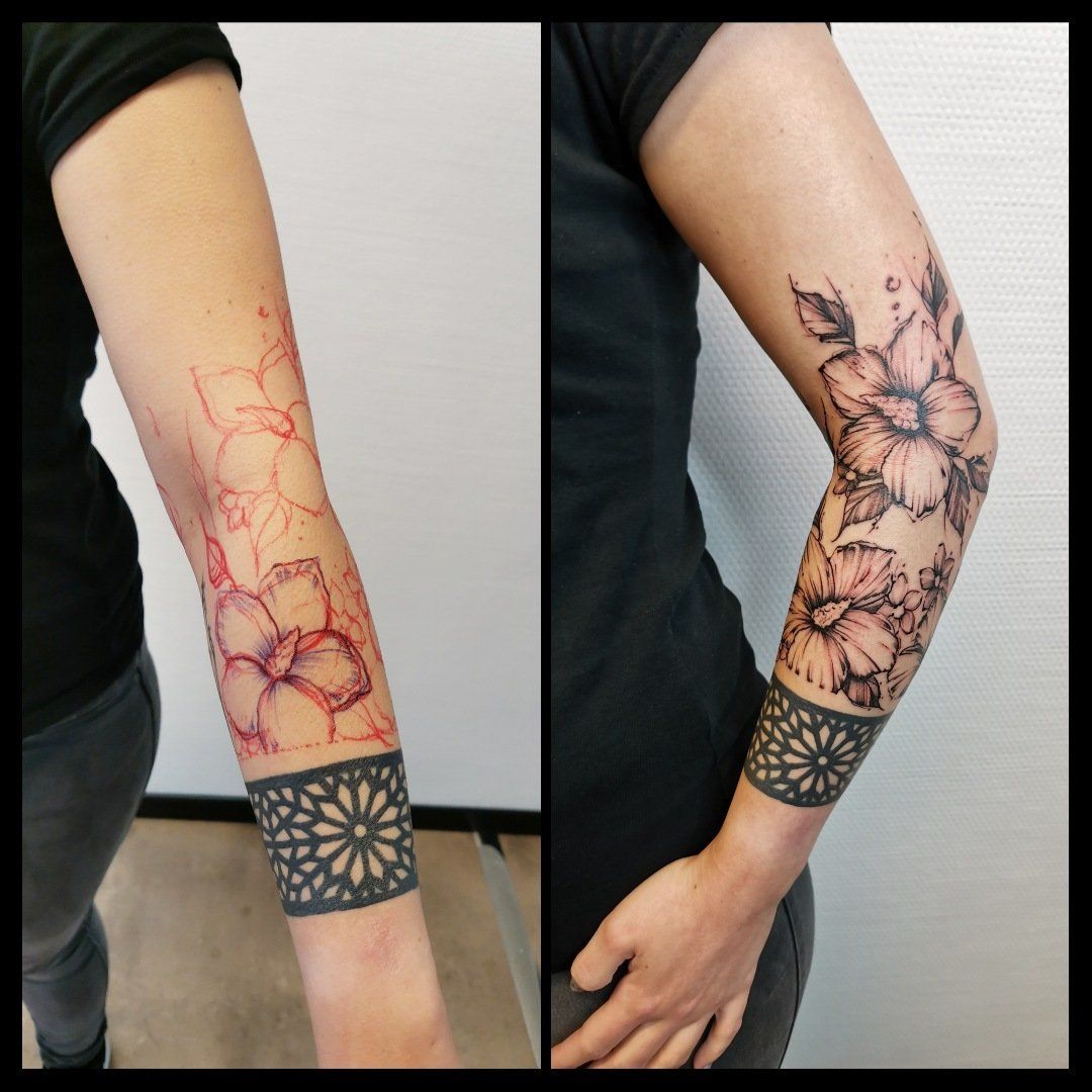 Hibiskus , Hawaiiblume Tattoo, Hibiscustattoo , Hibiscus, Flower Tattoo, Tahitiflower, Tahitiblume, Blumentattoo, Blumensleeve, Mandala und Blumentattoo, Mandalaband, Blumenband, Blackwork Blumen