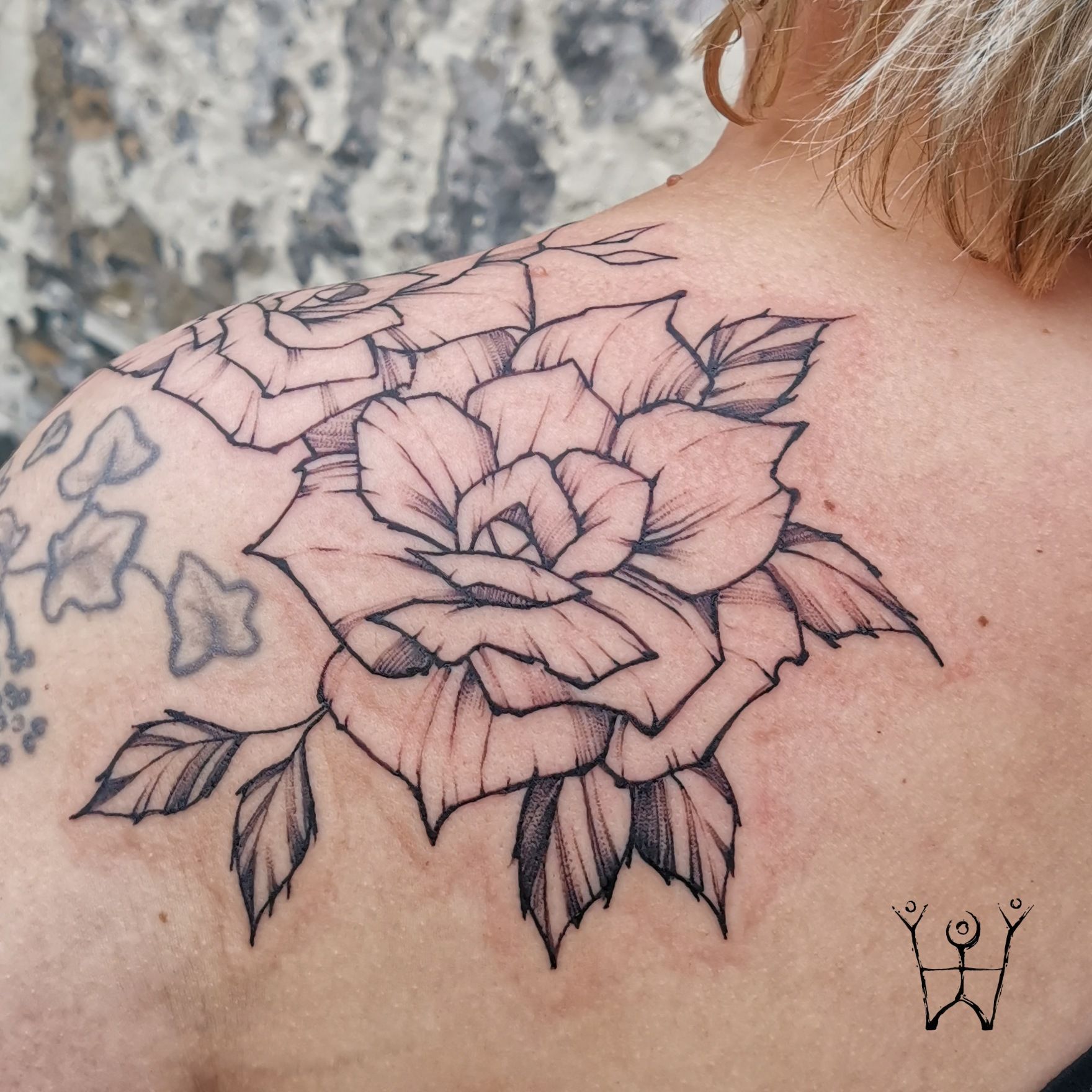 Wildrosen, Wild rose, Wildrosentattoo, Wild rose tattoo, Freehand, Freihand, Blackwork, Flowertattoo, Blumentattoo, Floraltattoo, Florales Tattoo, Flensburg Tattoo Studio, Flensburg Tatätowiererin, Schwarze Zeit Tatoo, SchwarzeZeit