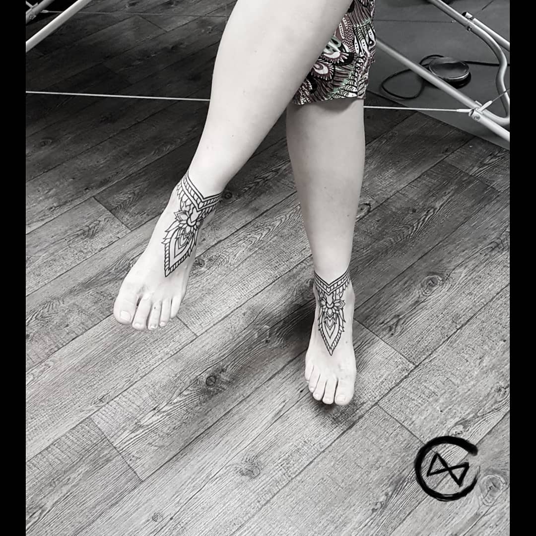 Mandala Ankle Band Tattoo, Tattooed Feet , Manala Foot , Mandala Fuss Tattoo, Fusstattoo , Mandala Tattoo, Dotwork and Linework Tattoo, Mandalatattoo, Flensburg Tattoo Studio, Schwarze Zeit, SchwarzeZeitTattoo