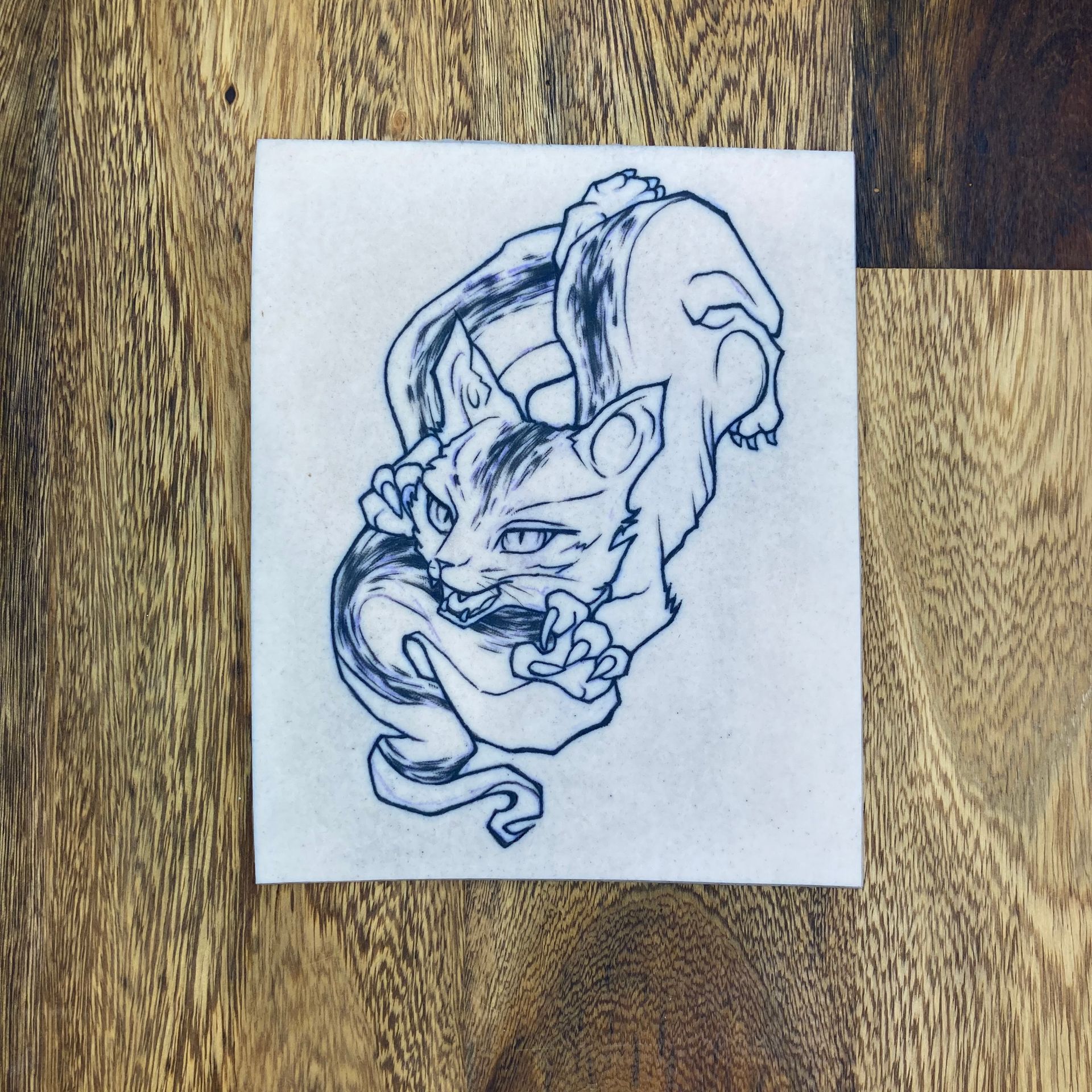 Evil Cat, böse katze, katzen tattoo, probehaut, practice skin, fake skin, sketchy, tattoo,